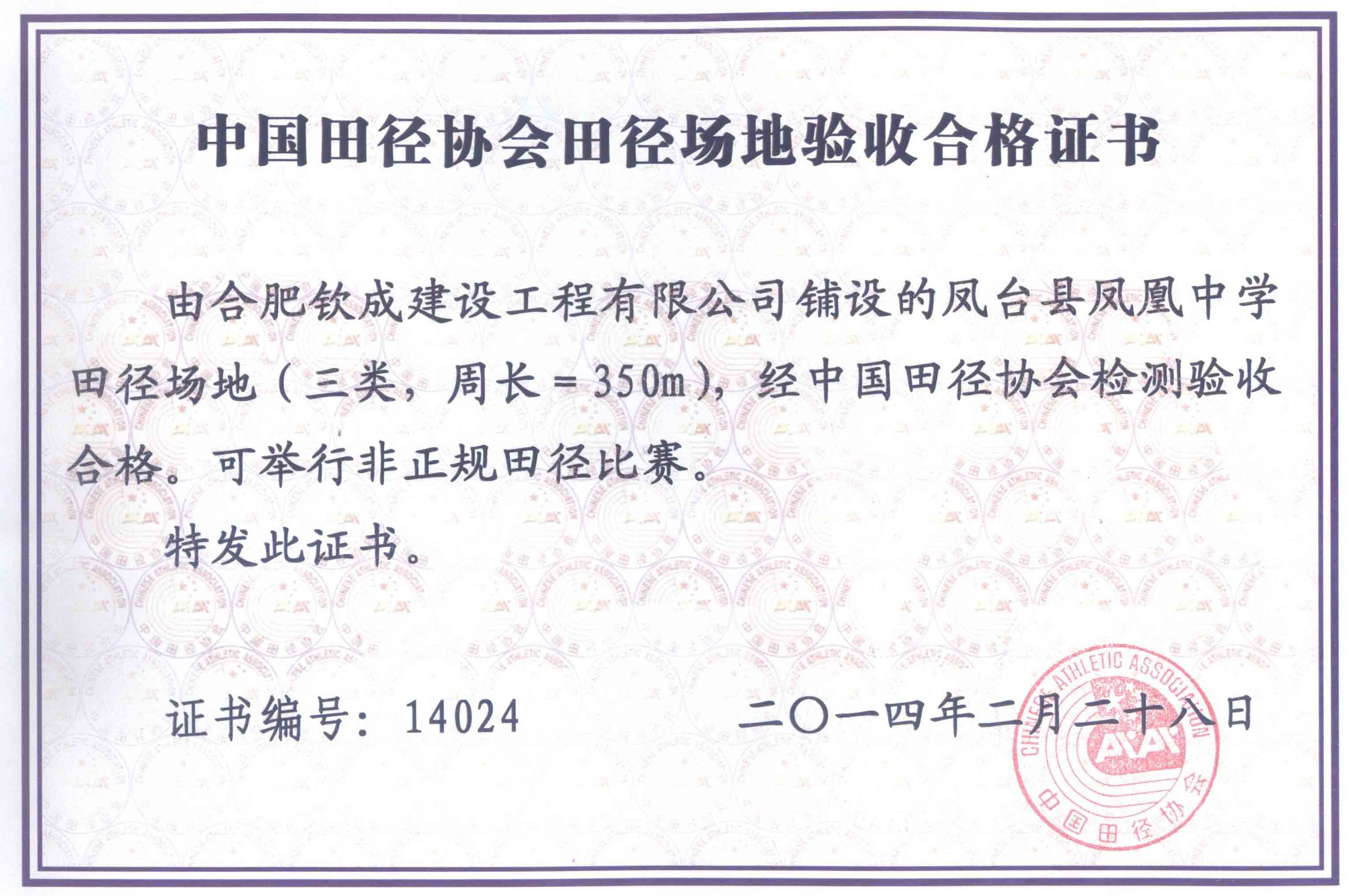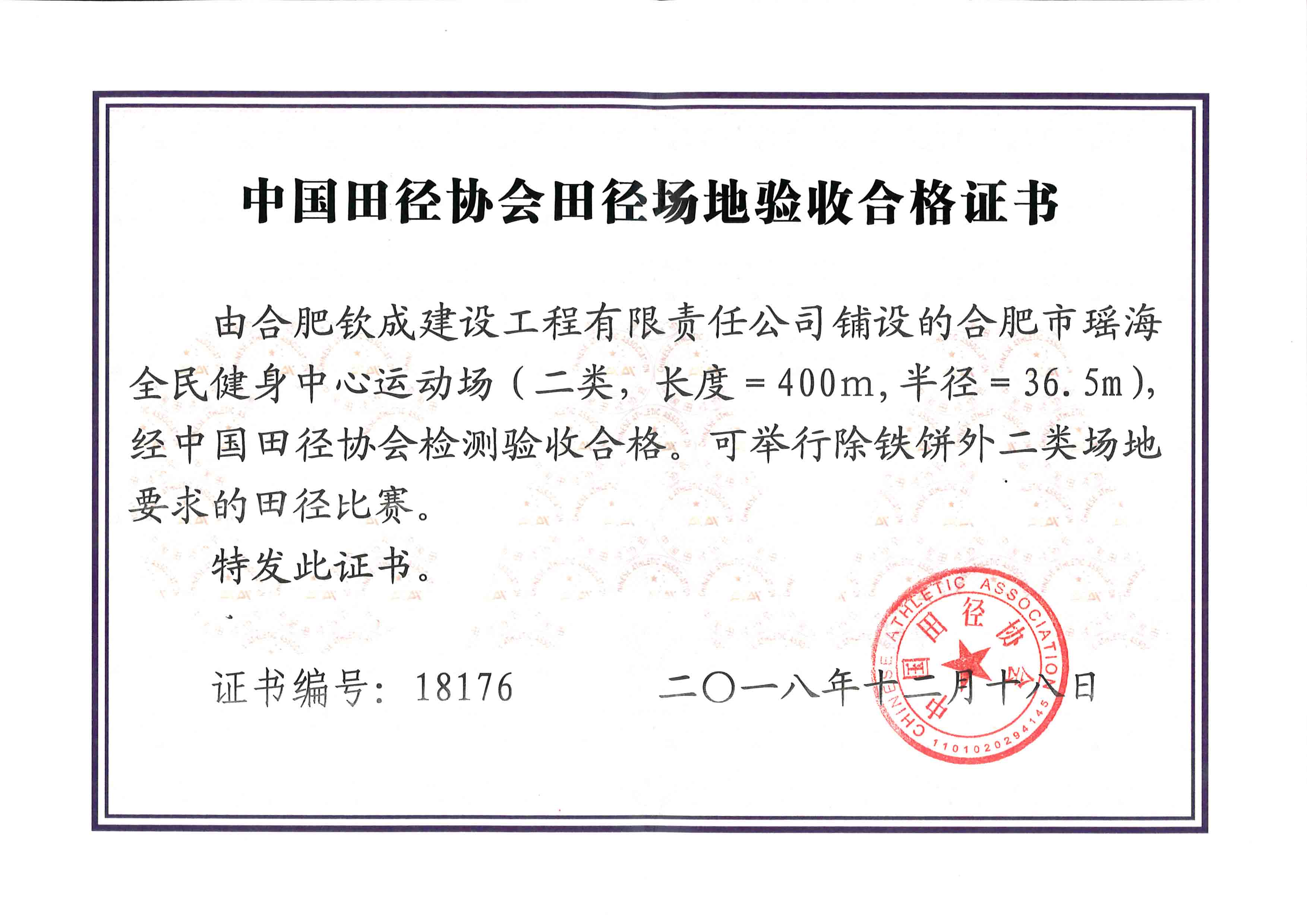 AQ-4-中國田徑協(xié)會場地驗收合格證書(合肥市瑤海全民健身中心運動場)